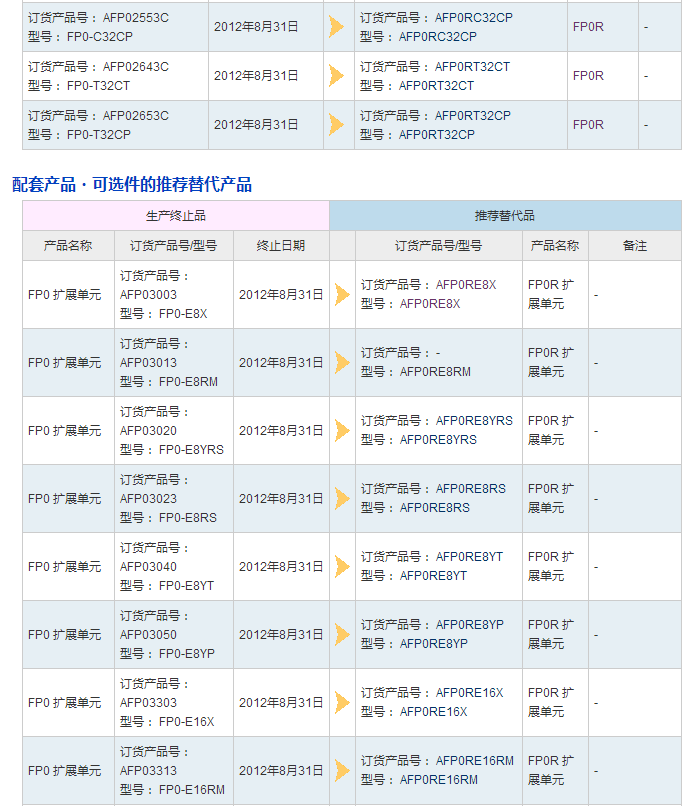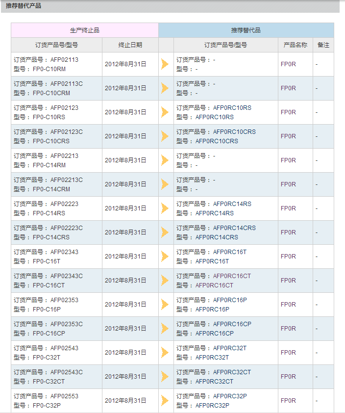 可編程控制器FP0系列部分產(chǎn)品已停產(chǎn)。您可以參考推薦的替代型號。
