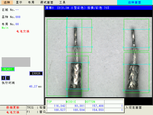 檢測(cè)線纜頂端三個(gè)尺寸及顏色