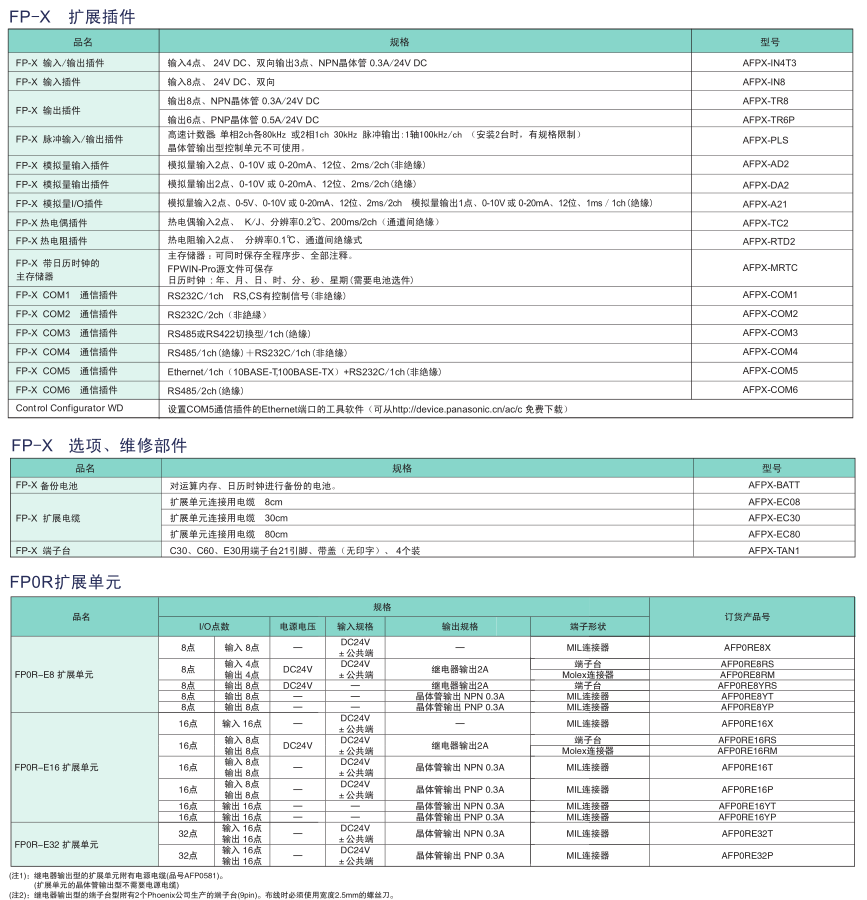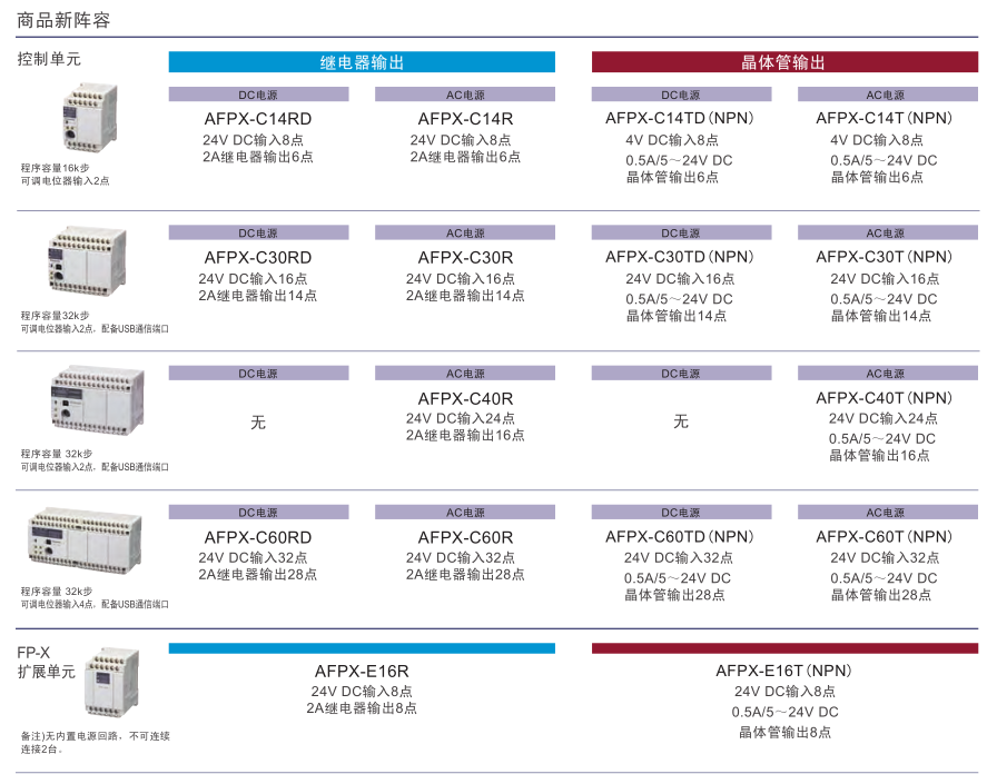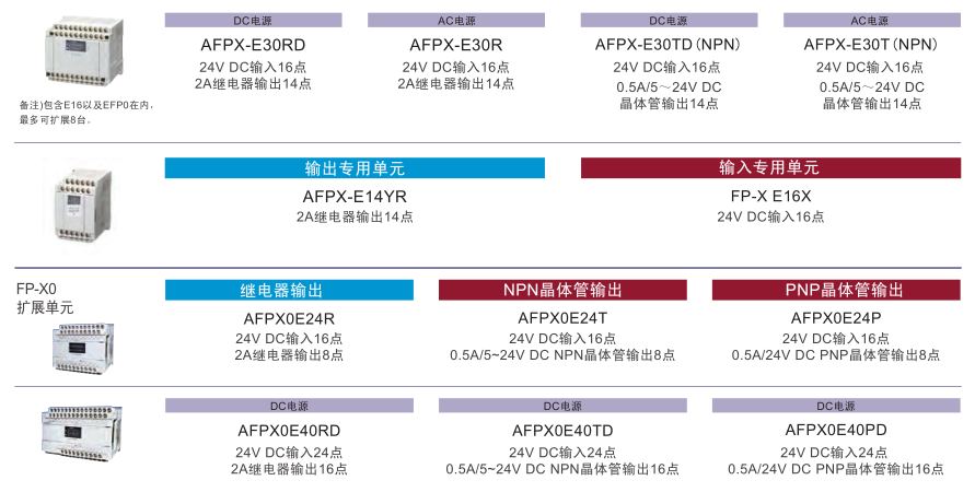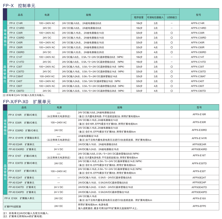| 擴(kuò)展單元 | 14點(diǎn) | ● (無電源部) | - | - | - | - | |