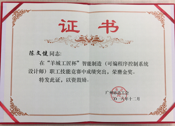 為提升我司技術(shù)人員實(shí)踐操作能力,我司員工積極參加18年12月15-16日由廣州市總工會舉辦的首屆“羊城工匠杯”智能制造(可編程序控制系統(tǒng)設(shè)計(jì)師)職工技能競賽。分別榮獲金銀銅,優(yōu)秀組織獎四個獎項(xiàng)。